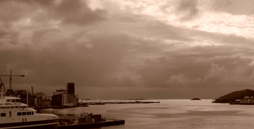 After lunch, we read some more and then they announced that the boat was docking in Bodø for just an hour. Mark and I decided to get off and explore the town. Bodø receives rain almost all year and is one of the windiest places in Norway. We didn't find it to be a very pretty city with large tanks and boat containers near the dock. We walked up to the town center (10 minutes), looked around and took pictures, and then returned to the ship before it sailed off. We saw some salmon farms off the boat and tried to get some photos as we sailed by.