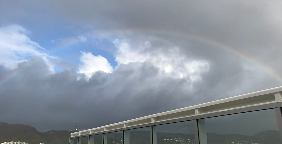 A very uneventful sea day. Despite the rough sea at night, we were able to get some sleep. The boat was originally scheduled to get to Bodø by noon, but with all of yesterday's problems along with the weather issues, we did not arrive at Bodø until 3 pm. At about 11 am, they announced that we were crossing into the Arctic Circle. There was a postmaster on board who would stamp a postcard or paper with an official "Crossed the Arctic Circle" stamp. Since we would not be getting off the boat, we decided to use the fitness room, not a popular spot on the boat. I used the elliptical while Mark rode a bike. I have to get my steps in! There were some nice views from the exercise room as well. On of the things we did see was the mountain range called the 7 sisters.