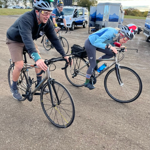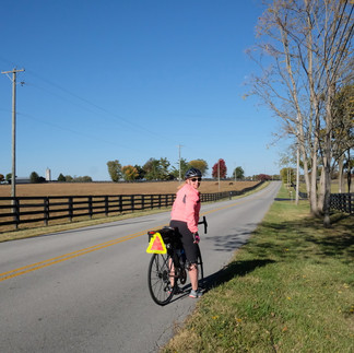 This was the coldest morning of the trip, a little above freezing. We have bike bags so we could layer up and store them later as the day warmed up. We started every morning with a Route Rap. This day it was the rope route on the ground. You can see the hills, water, and coffee stops along the way. Because we were in Kentucky, the leaders thought it would be fun to have a mini derby on bikes. Two leaders biked along with two guests. One of the guests won the "Kentucky Derby" by a nose and it was fun!